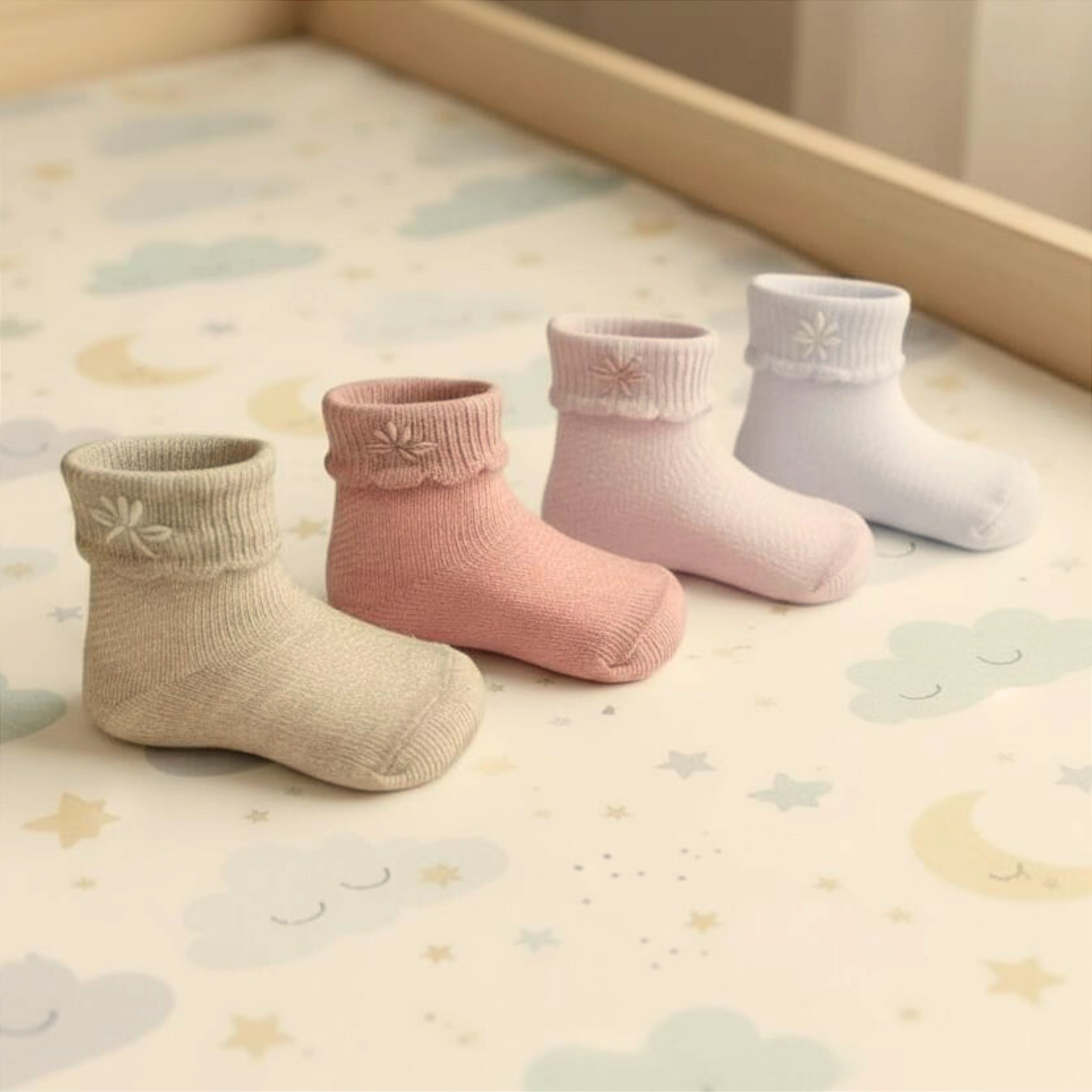 Meia Infantil de Algodão Trabalhada com Bordado Artesanal