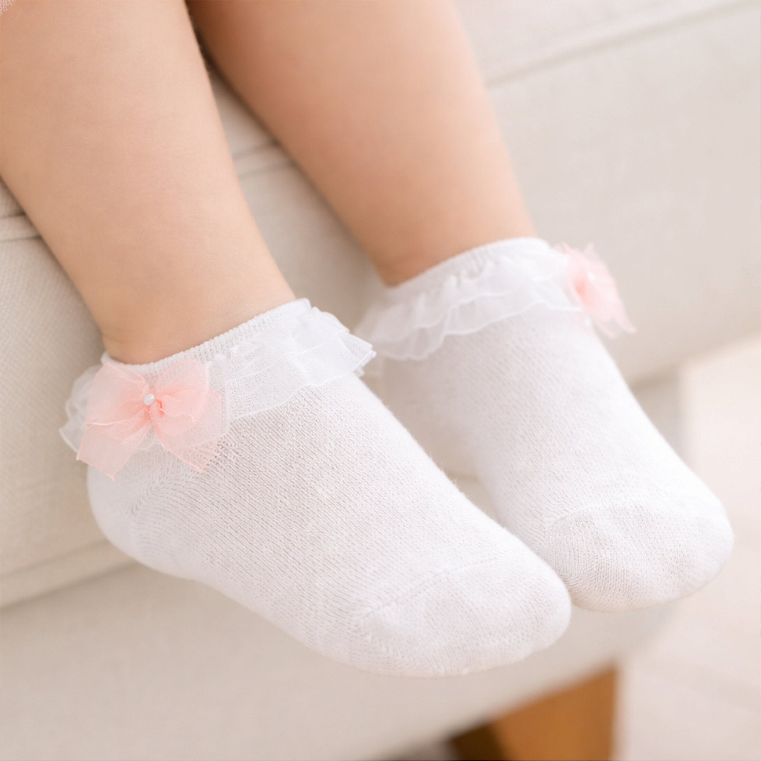 Meias feitas em algodão e possuem uma bela renda de voal e laço!